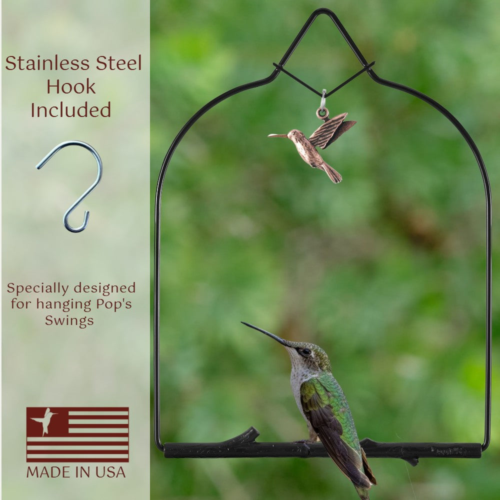 - 100% American Made and backed by Pop's® Lifetime Warranty Guarantee. Each swing includes a stainless steel hook for hanging with informational hummingbird FAQ card with each purchase.